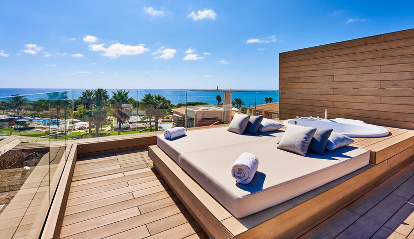 Luxury 92 m2 Suites, including a 35 m2 rooftop terrace with large hydromassage pool, daybed and magnificent sea view.